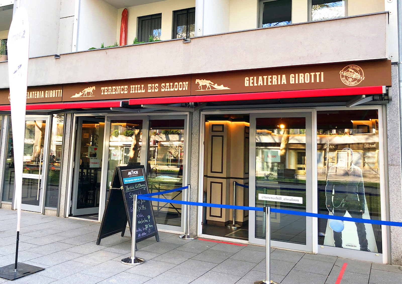 Auch wenn derzeit wegen der Corona-Schutzmaßnahmen kein entspannter Caféhaus-Besuch mit Eis-Schlemmerei unter den Augen des Filmstars starten kann, nutzen die Dresdner den Straßenverkauf des Ladens ausgesprochen gern. Das Angebot ist mit 20 bis 30 Sorten bunt gemischt und klingt und schmeckt verlockend: Neben Terrence Hills Lieblingssorte Pistazie bereichern Eiskreationen mit den Namen seiner Filme das Angebot. So gibt es unter anderem »Zwei wie Pech und Schwefel« oder »Die rechte und die linke Hand des Teufels«, welche es geschmacklich in sich haben. Wenn die Gelateria wieder normal öffnen kann und die bisher noch hochgestellten Stühle zum Verweilen einladen, liefert auch wieder »Miss Fein« köstliche Kuchen, Torten und Gebäck.