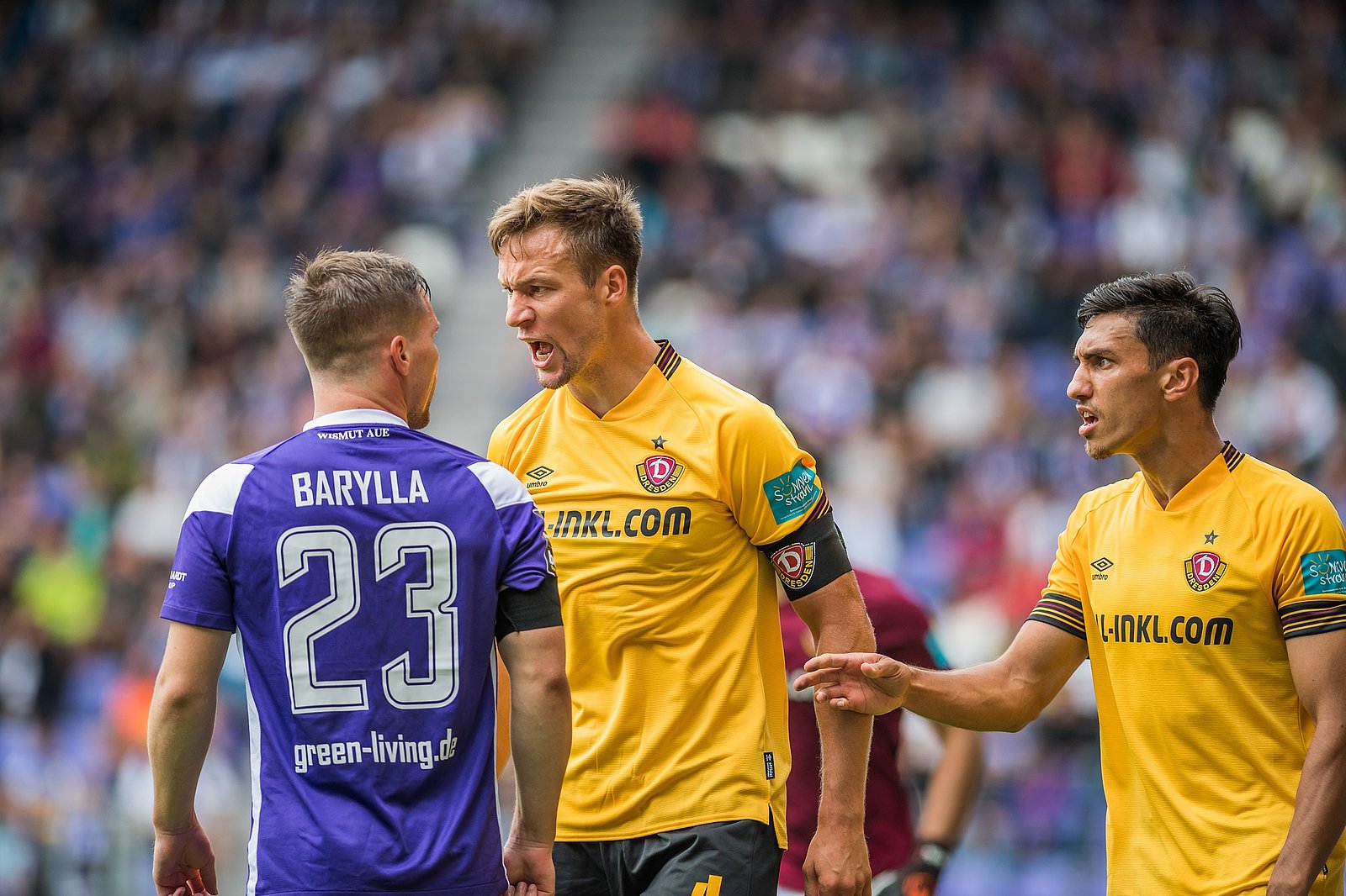 Dynamo Dresden: Drljaca, Ehlers, Kammerknecht, Knipping, Melichenko (56. Conteh), Will, Akoto, Meier (90. Lewald), Arslan (75. Weihrauch), Kade (56. Borkowski), Kutschke (75. Schäffler)