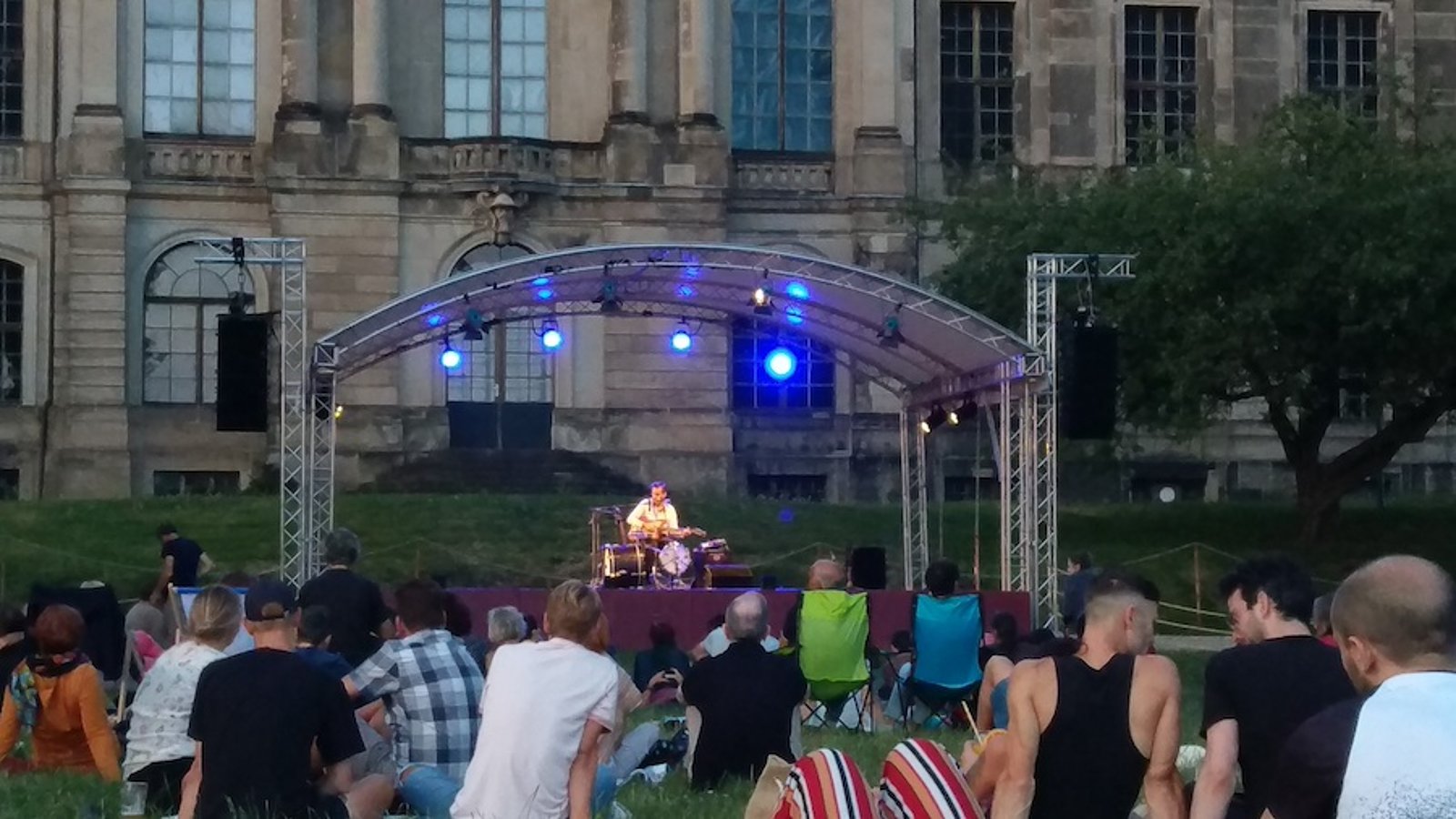 Das erste Konzert beim alljährlichen Palais Sommer am Neustädter Elbufer hatte die besten Voraussetzungen für einen hervorragenden Saisonauftakt. Und enttäuscht wurde niemand. Die schwedische One-Man-Band Bror Gunnar Jansson setzte in der sommerlichen Abendsonne zu den ersten Saitenschlägen auf der Gitarre an. In einer Kulisse, eingerahmt von zwei stattlichen Ahornbäumen, trägt er als Gegenpart zum leichten Summer Vibe melancholische Lieder mit einer gewissen Schwere in die Luft.