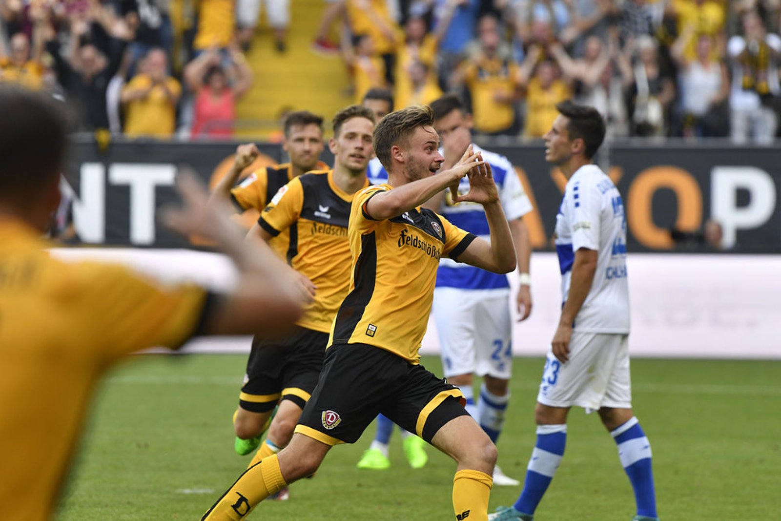 Es dauerte schließlich 16 Minuten, bis Dresden etwas klar Strukturiertes in der Offensive zustande bekommt, aber das sieht dann schon mal sehr schick aus: Ein feiner, sanft getretener Heber kommt in den Strafraum, wo sich Berko und Möschl fast über den Haufen rennen, der 40er sich aber durchsetzt und nach einem Schlenker um den Gegner an Mark Flekken scheitert. Neue Saison, altes Thema: Chancenverwertung. Kurz darauf gibt es einen Wolfsburg-Déjà-vu-Moment: Ecke Kreuzer auf Konrad, der zieht wieder direkt ab – doch diesmal scheppert es nicht im Netz, denn Flekken hat den richtigen Kurs beim Segeln. Gerade mal zwei Minuten später will es dann wieder Stoppelkamp besonders sehenswert machen, indem er mit dem Außenrist vollenden will, doch knapp vorbei ist auch daneben (dies eine Fußballweisheit, die in sich stets stimmig ist).