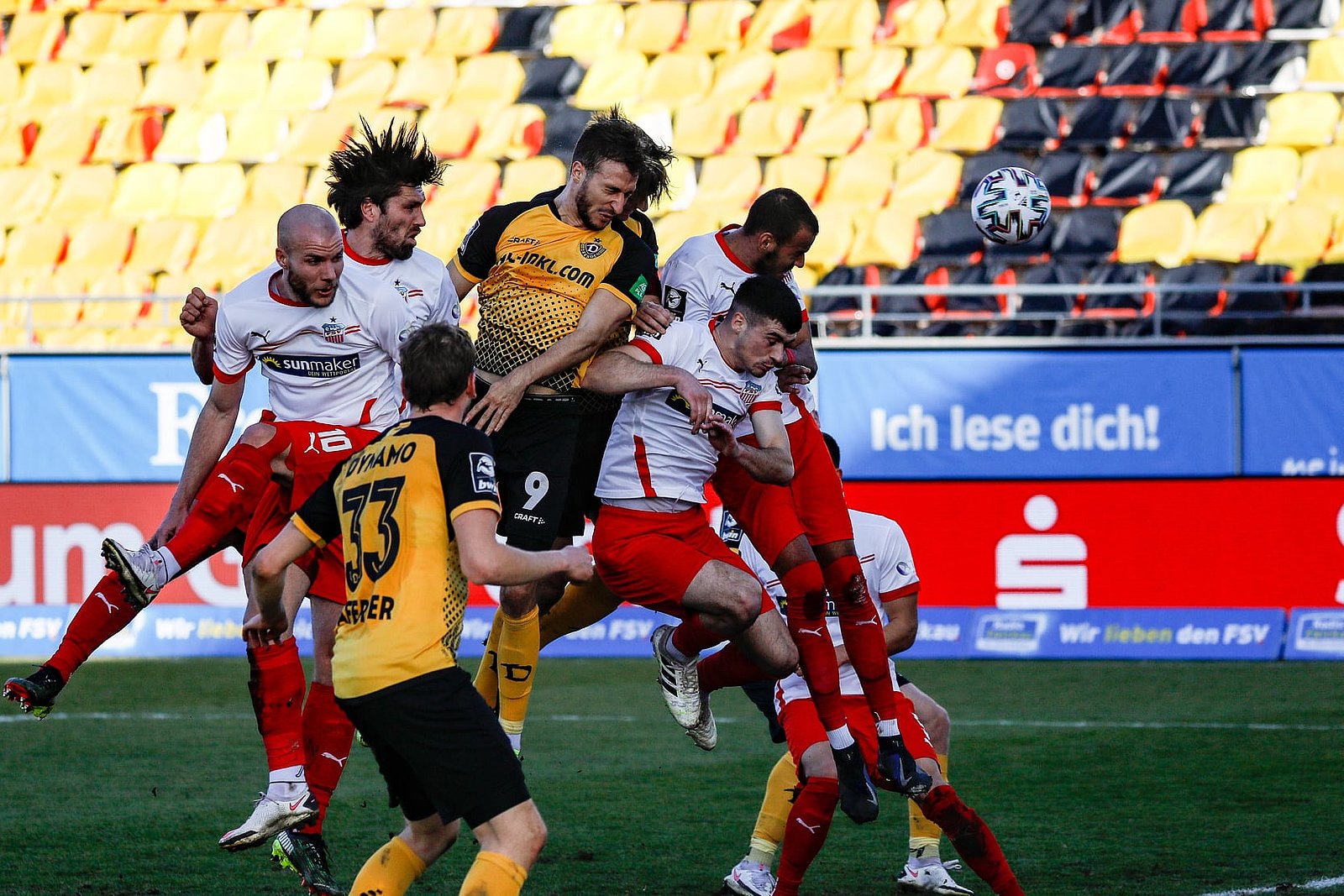 Dynamo hat den Ball und schon nach 120 Sekunden erkämpft Königsdörffer die erste Ecke. Paul Will, diesmal für alle Standards in des Gegners Hälfte zuständig, tritt diese gut herein, aber Schiedsrichter Patrick Kessel sieht einen widerrechtlichen Angriff auf Schlussmann Brinkies, obwohl dieser eher vom eigenen Mann niedergestreckt wird. Es ist nicht die einzige Zweikampfbewertung, die in diesem Spiel fragwürdig sein wird – auf beiden Seiten.
